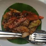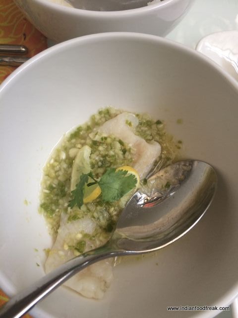 After washing down my glass of bubbly, I was in the mood to try out the main course. We started with the Steamed Dory (Fish) Lemon Chilli Garlic that was very well cooked and quite refreshing. I next tried the Chicken dish Pad Kra Prow Kai with steamed rice. The dish still waters my mouth even one week after having tried it. It was a perfect balance of soft meat and spicy chilli gravy.