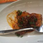 The Vegetarian fare surprised us with a wonderful Fried Turnip Cake – crisp and perfect on the outside with soft flavorful inside. It beat any fried potato, or tofu starter that I usually see at similar spreads. The Sweet Corn Patty was very good with the spicy red chilly sauce and won my heart. The Stir Fry Tofu and Vegetable Chive dumpling were weaker cousins of the first two appetizers.