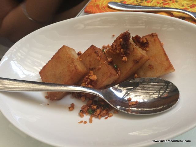 IMG_3287The Non Veg Fare was far more exciting (surprised?). I loved the Stir Fry Chicken Black Pepper with crunchy capsicum and cleaned up the Prawn Chive Dumplings. The Fried Lemon Grass Chicken was very tasty and I just could not hold back bite after bite. The taste buds were afire with the new flavor but the taste was quite amazing. The Chicken Satay was standard quality and a hit with my 2 year old, which is a good sign – she ate all of 8 pieces.
