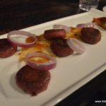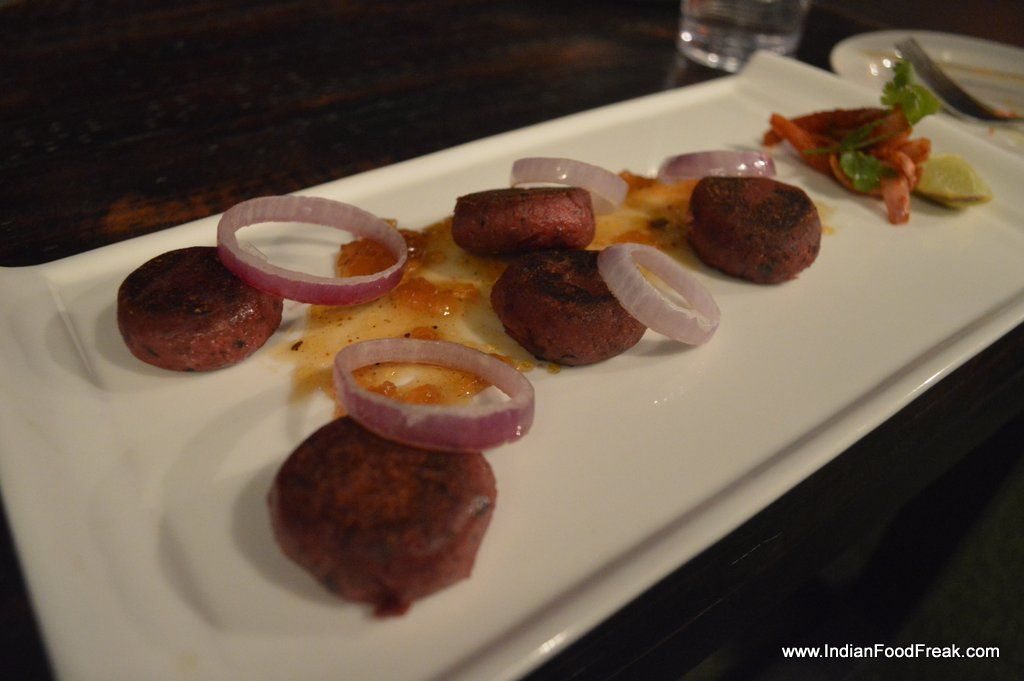 Mushroom KurkuriIn the vegetarian section mushroom kurkuri is like anywhere else. But I did enjoy the beetroot patties that have again been given an international twist by using feta cheese filling and the accompanying spicy mango chutney. And if you are a potato lover, do try the spicy potatoes that have a coating of tangy tamarind chutney.