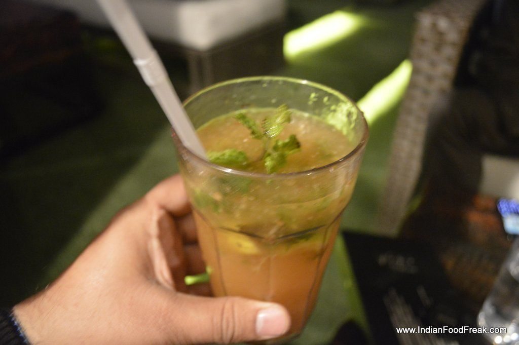 Achaari MojitoThe next drink pleasantly surprises me – The Achaari Mojito. Well if you think achaari flavors dont go well with drinks, this will put all your doubts to rest. I have had many types of Mojitos but this version is my first and certainly not the last. We Indians don’t normally compliment, but this drink makes me send my special compliments to their bar chef, Mr. Soumitra Lodh.