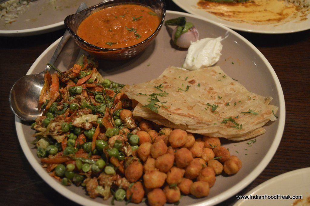 It did not have to strut in on stilettoes to take your breath away but the attractively long legged Sous Vide Mutton Nalli Gulmarg Rogan Josh was splendid with buttered naan topped with onion and coriander. Dal Makhni served with pan-fried vegetable fritters was made more interesting with deep-fried, boiled chickpeas. Crispy on the first bite, soft thereon, the peas added a textural diversity to the vegetarian dish.