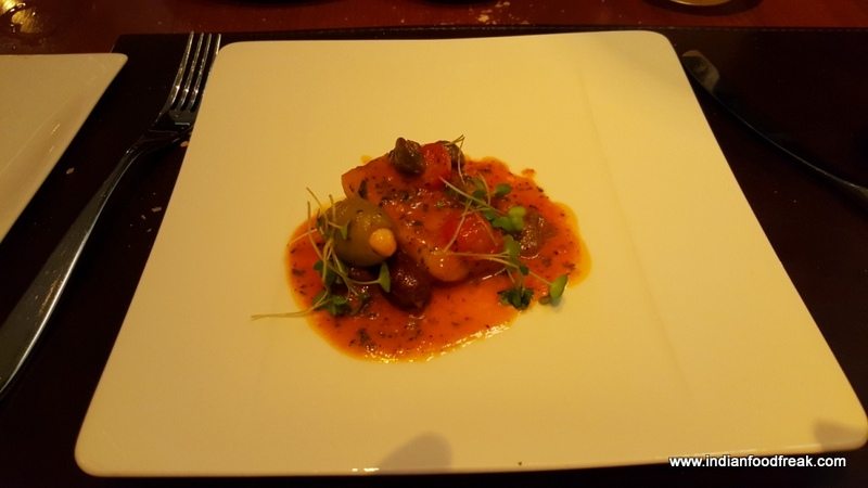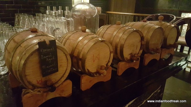 We were invited to review one of the restaurants in the hotel, their Italian restaurant Romano’s. The first impression when one enters through the doors is that of space; high ceiling, tall staircases to the floor above, ample room to move around and an ambiance which is purely European. The beautifully laid out first floor has a bar which has a private dining room, and a bar which is well equipped. The impressive array of infusers and mixers was indeed a visual treat. What I liked most were the little oak barrels in which they put their scotch for a few days for it to acquire additional oak flavour. I also noted that the place had reasonably full of quests..Quite a large number in fact for a Thursday, that too at 8.30 pm.