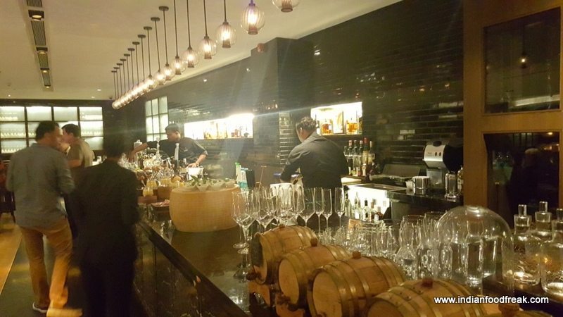 We were invited to review one of the restaurants in the hotel, their Italian restaurant Romano’s. The first impression when one enters through the doors is that of space; high ceiling, tall staircases to the floor above, ample room to move around and an ambiance which is purely European. The beautifully laid out first floor has a bar which has a private dining room, and a bar which is well equipped. The impressive array of infusers and mixers was indeed a visual treat. What I liked most were the little oak barrels in which they put their scotch for a few days for it to acquire additional oak flavour. I also noted that the place had reasonably full of quests..Quite a large number in fact for a Thursday, that too at 8.30 pm.