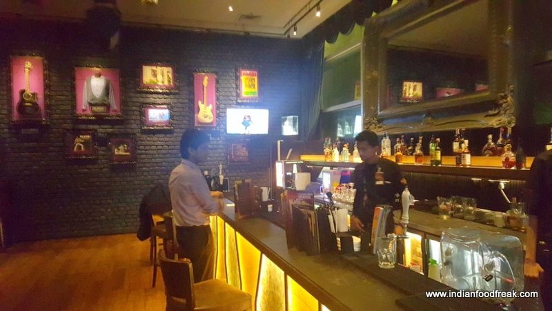 20151208_202601Located in a lane off Fun Cinema, I thought it would be a smallish place. And it is with this is mind that I entered. The first impression…wow!! This is not at all what I expected it to be! Wonderfully spacious with lots of room for easy movement, I loved the way it looked and felt. The walls were nicely decorated with instruments and clothing associated with well known musicians, a big screen with some music video playing added to the ambiance. I particularly liked the fact that the tables were not set too close to one another and gave the place an uncluttered feel.
