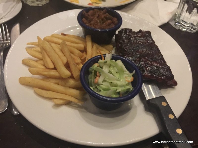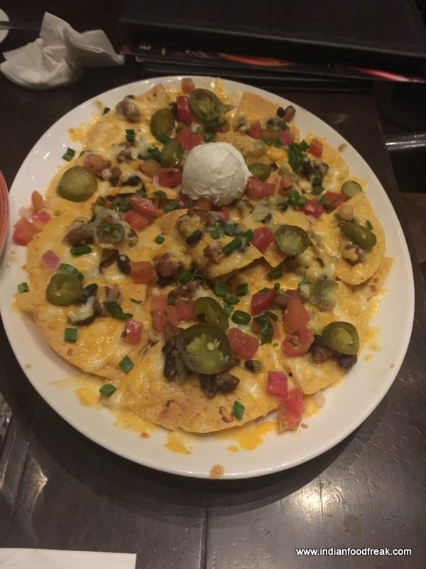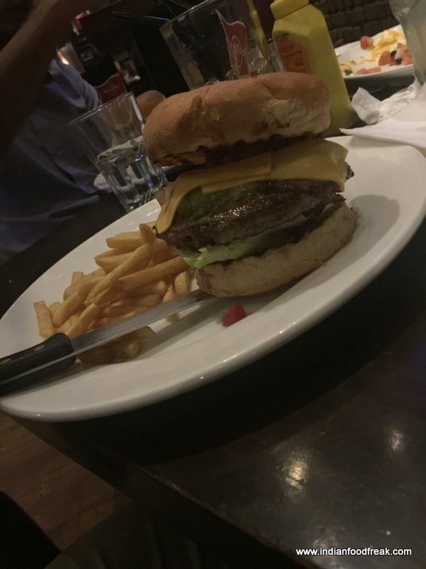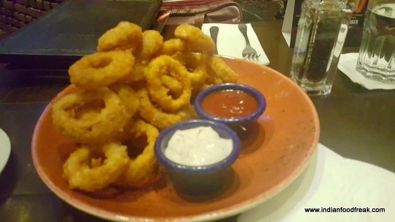 20151208_210338Well, while all those variants of Iced Teas had us mellow and soothed aplenty, the desire to try out some of the food had us move away from the bar counter to one of the tables. We began the tried and tested Hard Rock Cafe favourites, Original Hard Rock Onion Rings (INR 290) which were nice and crisply breaded – delicious! The Hard Rock Nachos (Half – INR 345; Full INR 525) didn’t disappoint at all, nicely loaded as they were with cheddar, beans, tomatoes, jalapeno, with a nice big dollop of sour cream. I washed it all down with a nice Kala Khatta Iced Tea, which along with the Aam Panna Iced Tea and Texas Iced, were the show-stoppers for the evening.