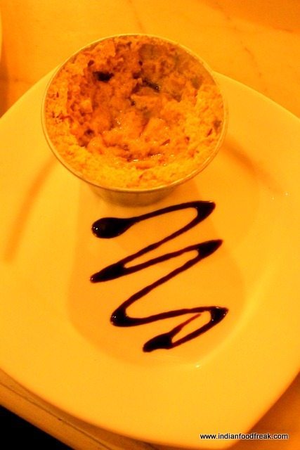 For Non Vegetarian Mains we were served Bassa Involtini with gassi sauce, tapioca risotto (Rs.345). Honestly we were so over whelmed by the rich flavourful Thai Biryani that the Bassa was lost in that. I guess another visit is due soon. There were many interesting fusions like English Pav Bhaji Pizza (Rs.245) or Pork Chops with jacket potato, glazed vegetables and apple sauce (Rs.395) for which I would love to come back.