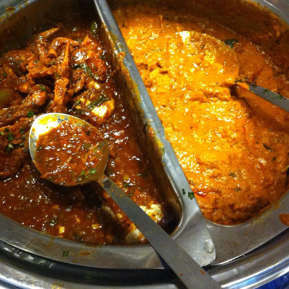 I chose to taste taste the Hyderabadi Chicken Biriyani – long grained Basamati rice, all separate, well flavoured and mild went well with the Goan fish curry. The fish curry had a coconut, coriander and poppy seed base, the only dish, surprisingly with a little bit of bite. The fish pieces were soft and perfectly cooked. The crab in holy basil sauce was the best looking dish and my dish of the day! A Chinese dish with schezuwan sauce and basil. Disappointed I could not use my fingers to eat that.