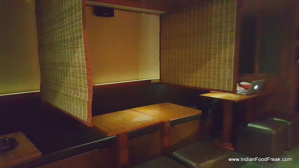 Last lunch order is taken at 2.15 pm. The décor of the small but cozy restaurant is basic, bamboo and wood predominant, with an open kitchen to one side. Seating is around a couple of tables set apart by thoughtfully hung bamboo mats, or at the counter itself. Lunch is served set menu style, each menu a complete meal by itself. Service is quick and efficient. Catering to predominantly office goers catching a quick lunch, the dishes are being served in half or full portions.