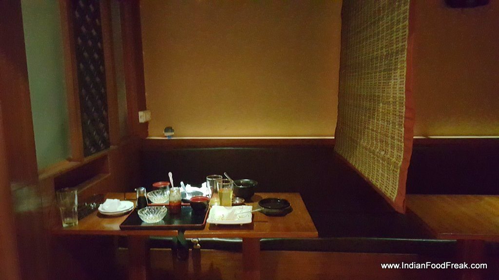 Having just come back from Europe, my companion and I were looking to lunch at some place serving food other than Italian/European. Global Foyer on Golf Course Road boasted two far-east Asian cuisine restaurants-one Korean and the other Japanese. The Korean one that we entered first, (at random) started off on a disappointing note with none at the entrance to seat us. We did catch the attention of a passing waitress, only to have her overlook us for a group of Koreans clients who came after us. It was clear to us that the restaurant cares a fig for neither Indian nor European clients (my companion was European). We stepped into the conveniently located Kuuraku that was next door. Thus, we discovered a gem of a restaurant whose name in Japanese could mean change, harmony or joy.