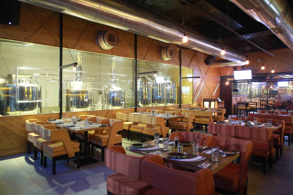 Ishan Grover-The Brewery MasterThe indoor and outdoor spaces at Lagom, will leave you awe inspired. The floating door is encased with glass on either side, and opens to a restaurant that is sectioned for a live brewing to a chilled out dining area, with a bar and music. The other level of the restaurant opens to a beautiful small dining area for smokers offering everyone their own secluded corner. The presence of exposed sand stone walls, soft coloured floors, non-traditional lights are just some of the elements that come together in this space to create a cohesive whole.