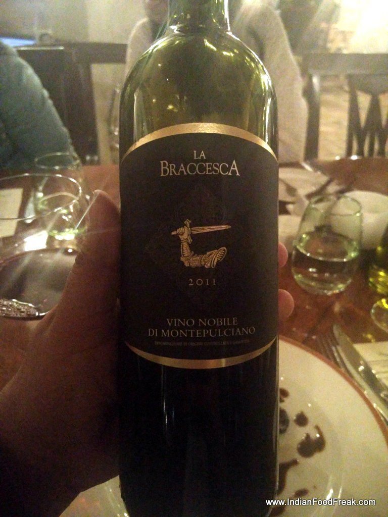 IMG_20160205_222406In the main course I chose oven roasted pork tenderloin with potato gnocchi. The gnocchi was perfectly done but I would have liked a little more jus on the side for pork. Else both the dishes are dry on their own. But as said in the orchestrated event, a flow of one instrument can get camouflaged with other, the same happened here. La Braccesca from Italy is a more robust wine with higher tannins and it not only compensates for the dry texture of meat but also lifts the flavors.