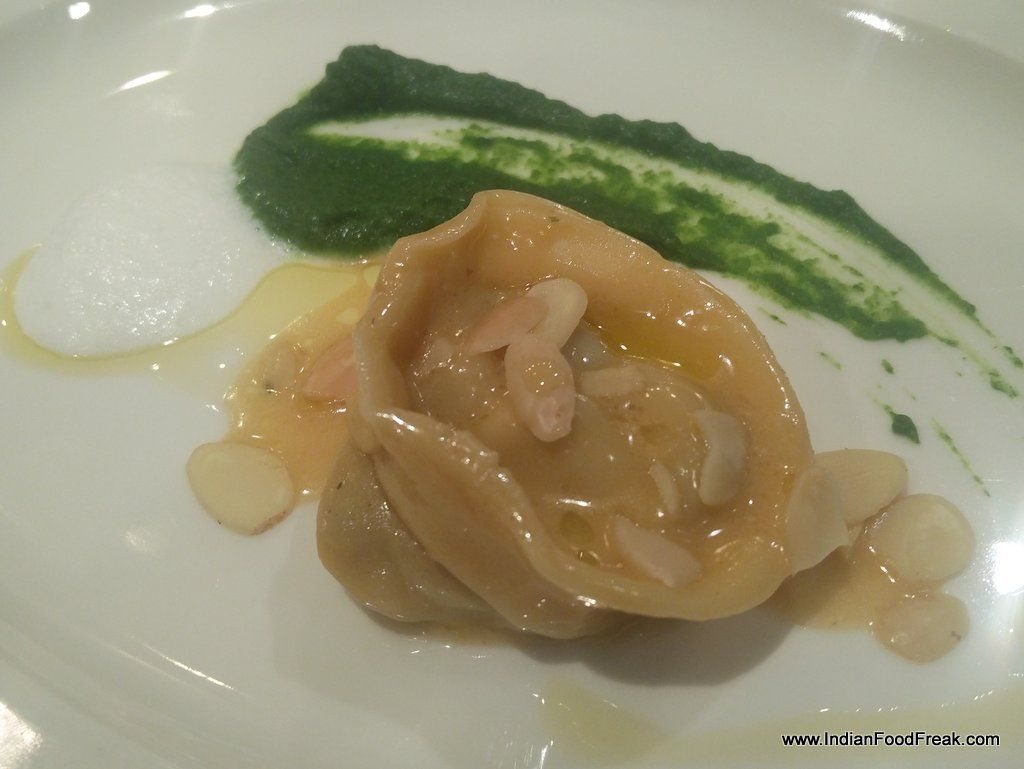 IMG_20160205_222310Wine sommelier Viraj Sawant was present to welcome the guests with his notes on wines that were being paired with the special menu. We start with Parmesan crème brulee whose saltyness is perfectly balanced by the sweetness of Luna Argenta Brut. A good start!