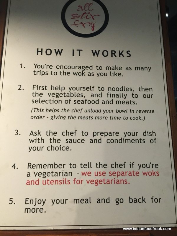 IMG_8836When asked whether I’d like to review All Stir Fry, Andheri, which opened mid November, I said a yes with no hesitation whatsoever as I had been visiting the one at Colaba for years together now and had even celebrated many personal milestones there. My review buddy was my 21 year old son, a young man with a keen sense of taste; I of course was simply glad he had agreed to come along…all credit to the fondness for the name All Stir Fry.