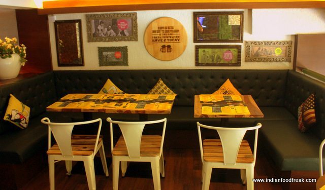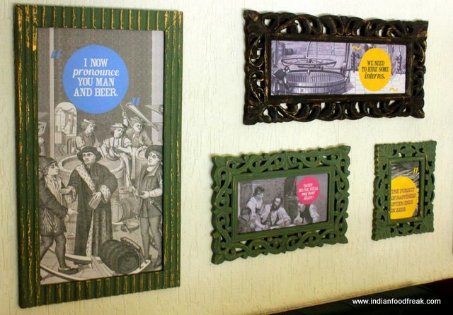 The place with a mezzanine floor, reflects the old world charm of traditional Irish pubs along with some humorous framed posters, wood engraved quotes; gorgeous ferns impart cheerfulness to the setting.