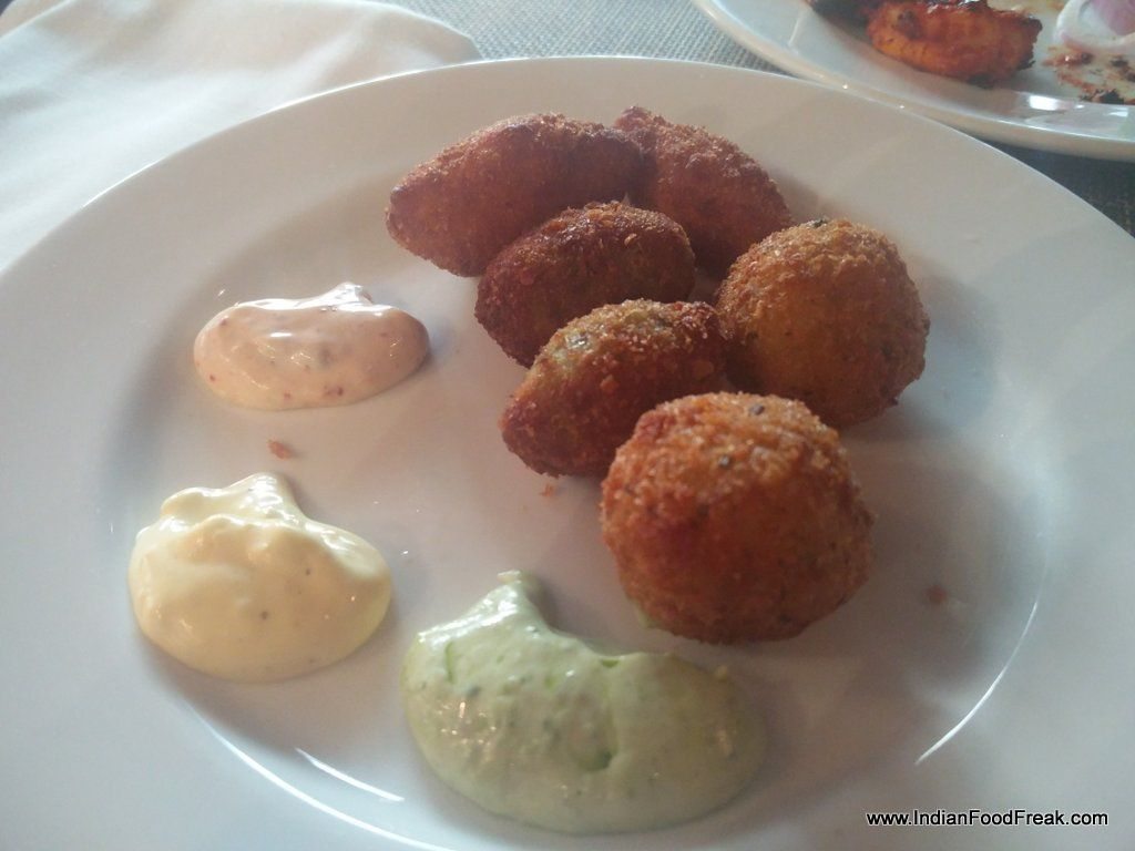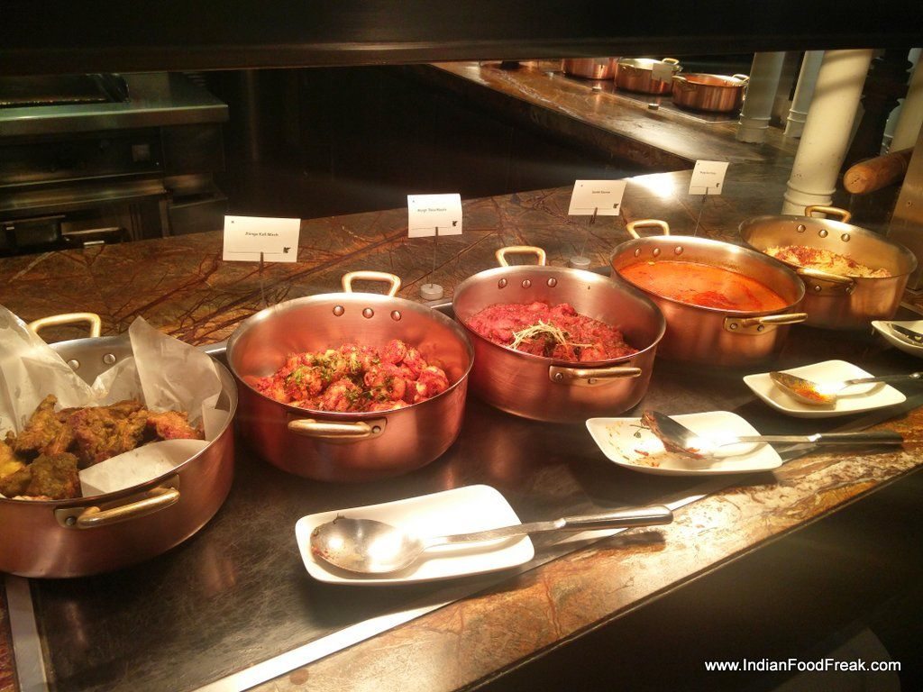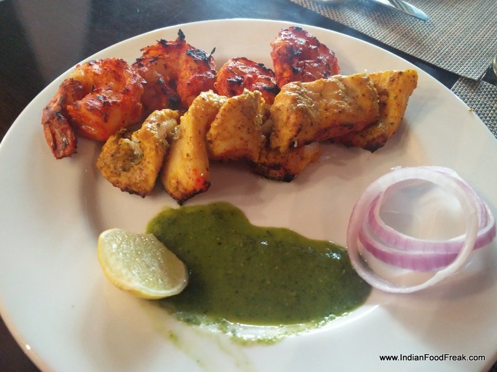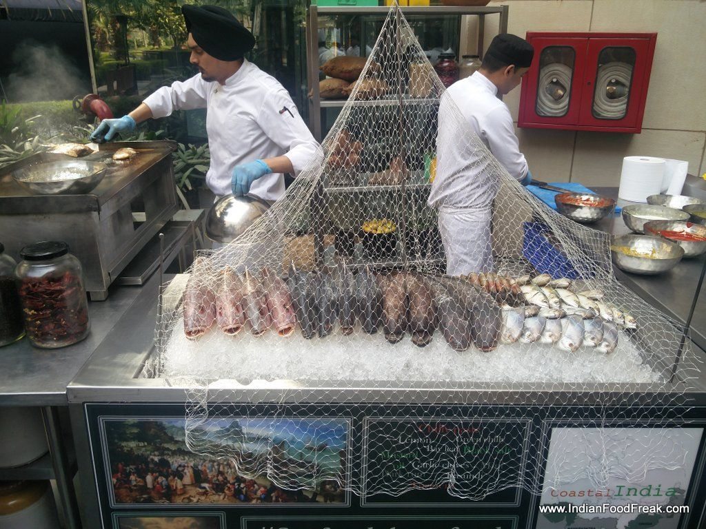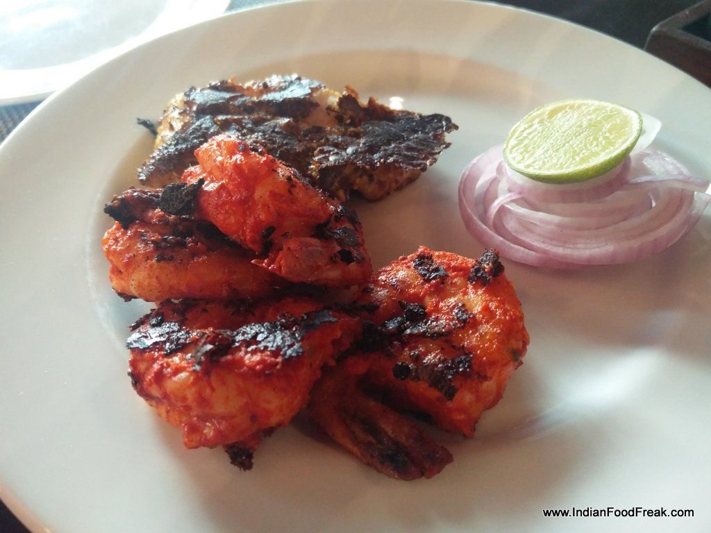 Executive Chef Girish Krishnan, who I met in my last visit, recognizes me and tells me that they get the entire sea food specially flown in the previous evening to serve it fresh. Most people say that they serve fresh sea food but the flavors and texture of each fish confirms the chef’s statement. My favorite here is the fish in sarson marination and prawns in hot red masala.