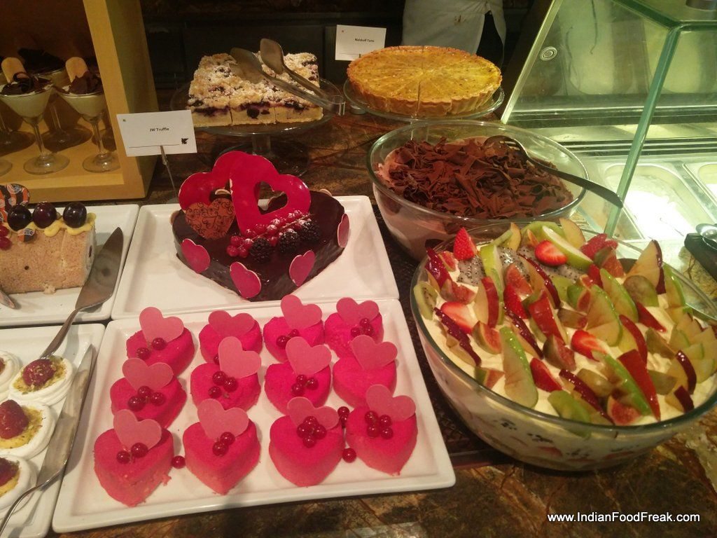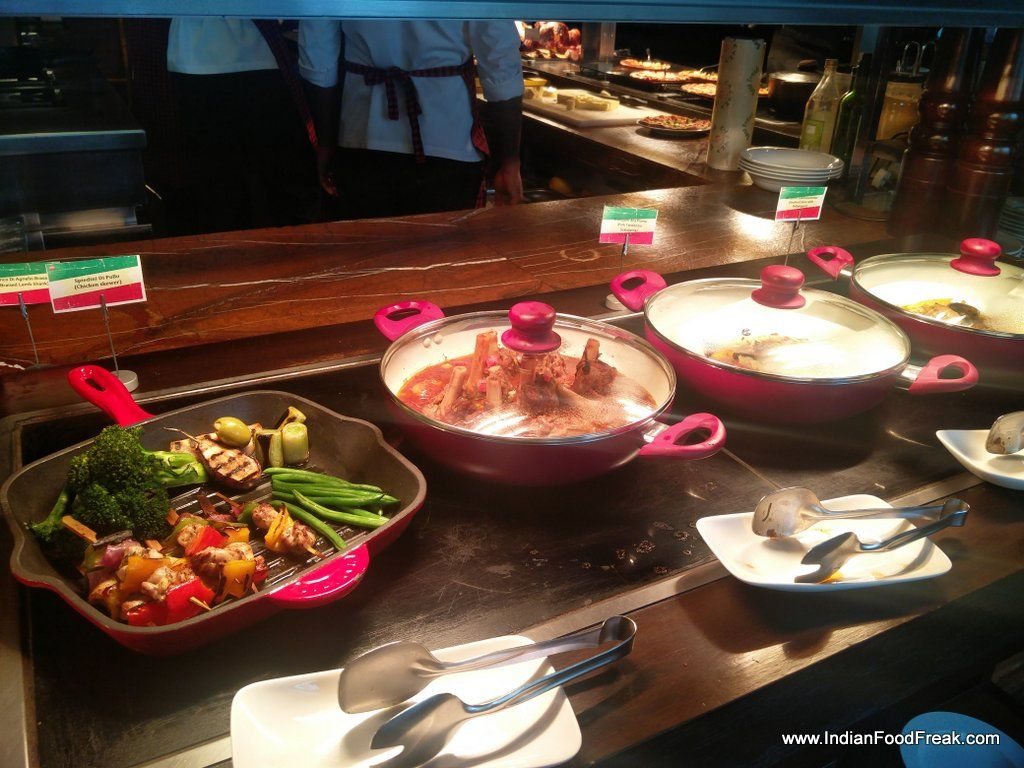 The restaurant is buzzing with guests and I soon see the entire place packed. Of course, Valentine’s Day is an important day for all to show their love and for many, the way to their loved one’s heart is through good food. Live music in the background, flowing wines and the amazing barbeque spread are enough for me to get started. The barbeque section has all kind of live grills but my favorite is the seafood station. River sole, sea bass, red snapper, grouper, pomfret, mackerel and prawns are available in abundance and I can have my entire meal here. And yes, there are oysters in the menu too !