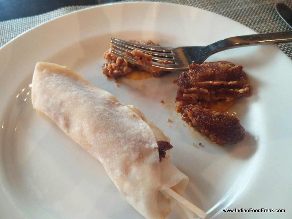 I spend more time at the barbeque section and try their galouti and the peking duck. Galouti is excellent though the pancake in which peking duck is served is breaking. Perhaps this is the only small glitch that I could notice in one of the widest buffet spreads that I have seen in Delhi. Not an easy task to manage for such a huge spread.