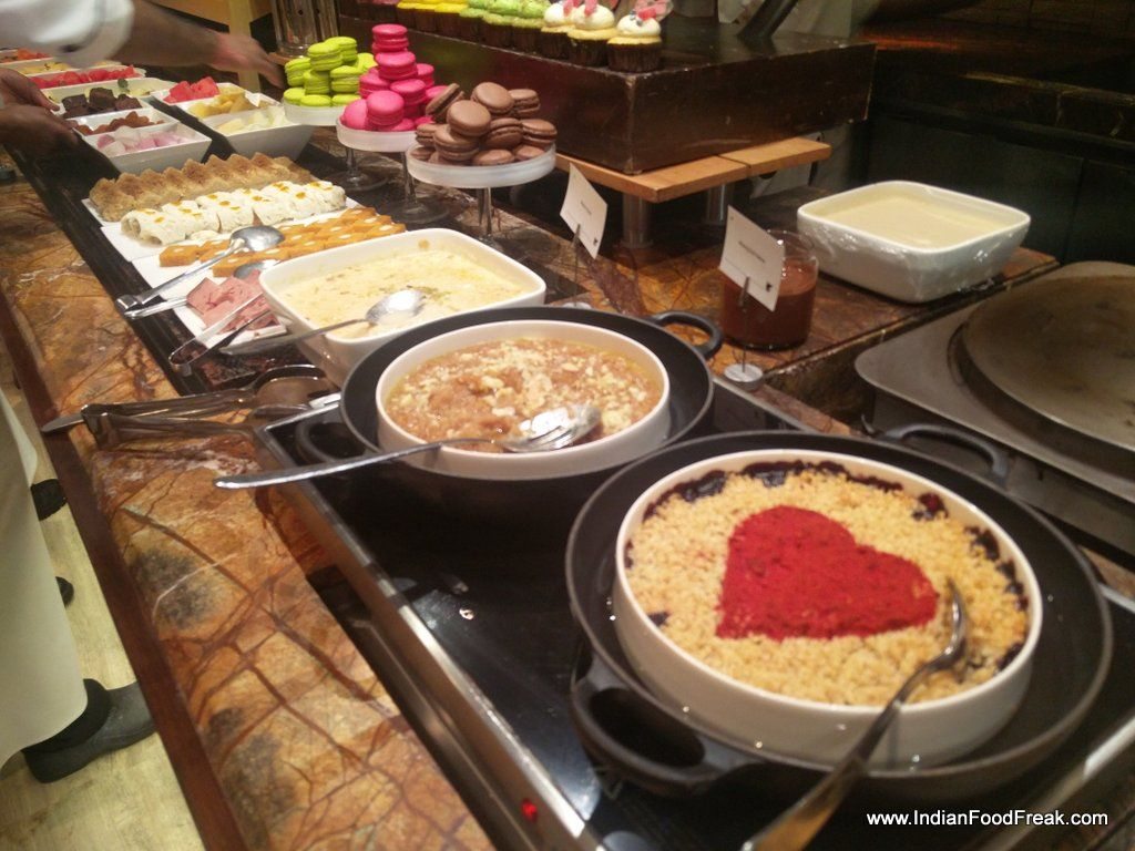 The spread never comes to an end with the choicest cheeses, salads, dimsum, chaat counter, oriental dishes and the lavish Indian dishes. A special section on freshest and local Indian vegetables serves methi-aloo and a few other dishes and my vegetarian wife quickly grabs more than a bit of them. I, meanwhile, gorge on the biryani and the mutton dishes.