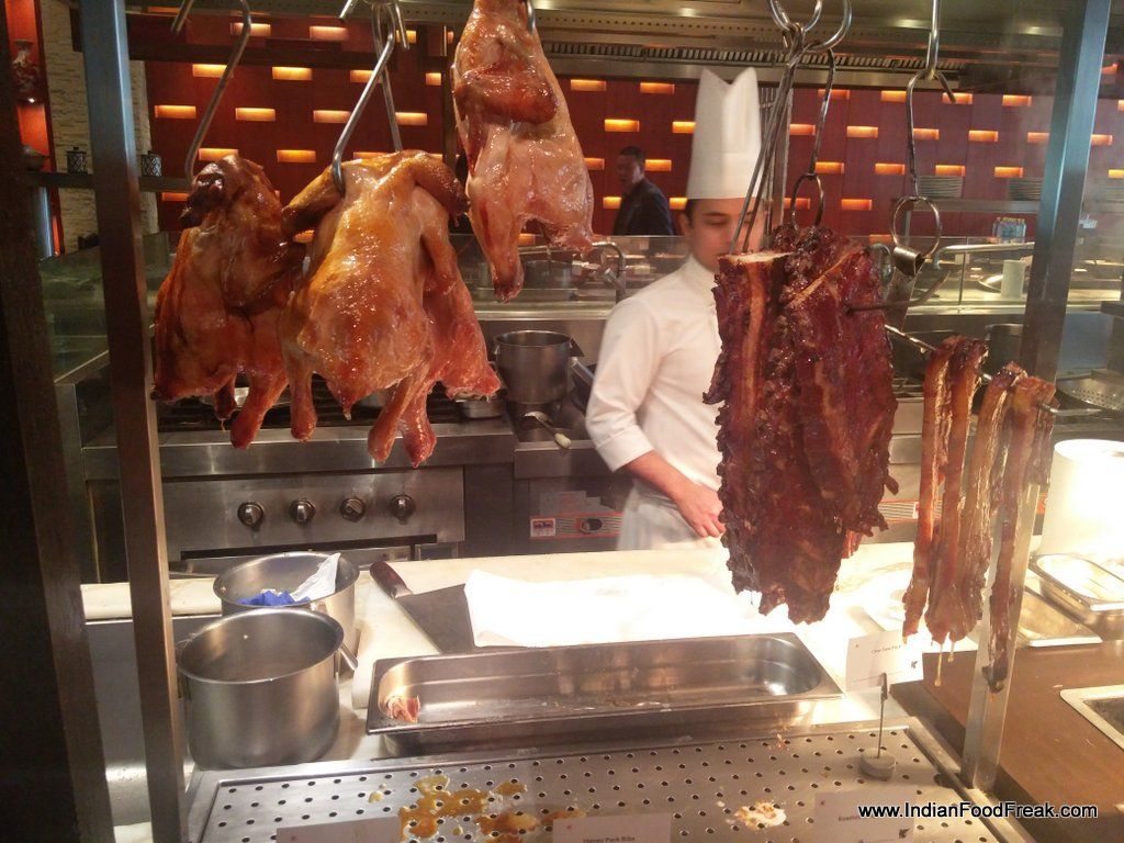 I spend more time at the barbeque section and try their galouti and the peking duck. Galouti is excellent though the pancake in which peking duck is served is breaking. Perhaps this is the only small glitch that I could notice in one of the widest buffet spreads that I have seen in Delhi. Not an easy task to manage for such a huge spread.