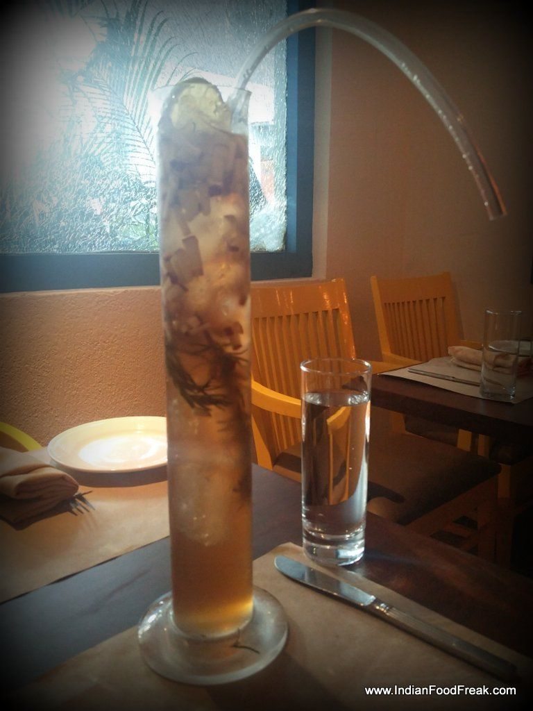 Paan ki Dukaan is like drinking your favourite meetha paan that has been spiked. The paan leaf, gulkand, cardamom spiked with vodka and notes from Sambuca will be a hit with the paan lover. Seemed like Tabula Beach had perfected a cocktail for almost everyone till I tried their version of LIIT which they call Earth – I really did not understand the need to add chopped apple – neither there was a spoon to eat it with nor were they fine enough to come through the straw.