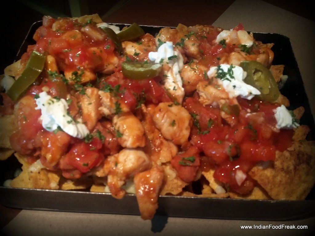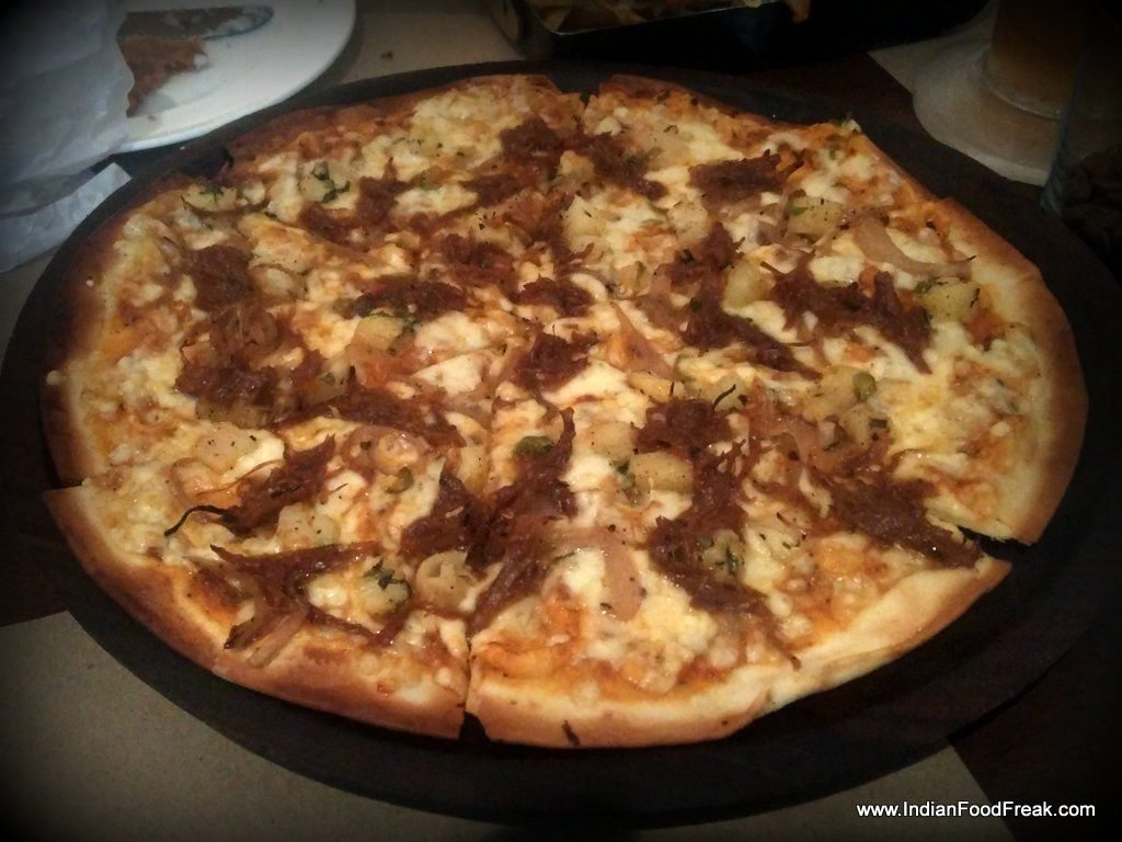 I try the Pork and Pineapple Pizza. The contrasting flavours of pulled pork and grilled pineapple gives the umami effect and even though my friend is not fond of pork, she keeps biting into it till she finishes the slice. Another must try here is the Vietnamese Chicken Skewers. These are flavoured with lemon grass and garlic and they go really well with the chilli-cucumber dip.