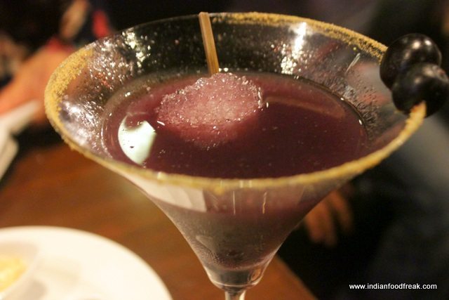 What caught our attention was they had GOLAS in their menu; Kaala Khatta(Black Current, Smirnoff, Lime Juice, Sugar syrup, Chat Masala, Ice Cube), Vanilla Te Rose (Rose Syrup, Bacardi, Ice Cream, Ice Cube) and the Nutella Craving (Chocolate Syrup, Old Monk, Ice Cream, Coffee Powder, Ice Cube) being the signature ones. P had a Nutella Gola and he loved that. The Golas are all priced Rs.100 without alcohol and Rs.150 with alcohol. Finally my dream of having a Kaala Khatta with alcohol came true. I loved the idea of the masala on the rim of the glass.