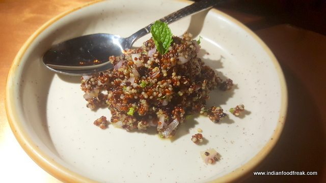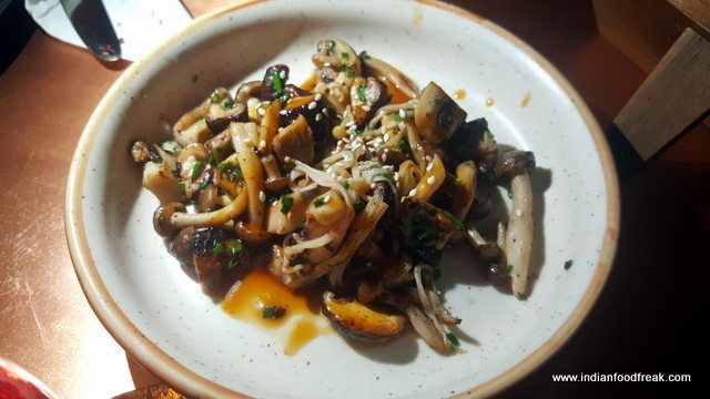The first dishes to hit our table were the Ceviche, the Quinoa Salad, Limo Chilly Prawns and a Mushroom Ceviche. Now, Ceviche is one dish for which I would happily do a one legged dance if done right and here I almost did it too. The restaurant has gone to the extent of getting the Leche de Tigre flown in for this dish and the flavours are just perfect. Oh I so wished that it had that added crunch of the salted Maize that one would get if eating in Peru as well as a better mix of seafood. Definitely as close to the real deal as I could have expected; Kudos to the team for bringing this dish closer to home. The Quinoa salad stood out with its ponzu citrus and the Limo Chilly Prawns which reminded me of Jamaican Jerk spices, was also quite delicious with its charred smoky textures. The Mushroom Ceviche was probably the weakest of the lot as it was more like a sautéed mushroom dish rather than a cooked-in-lime juice-ceviche. Though the flavours were not bad, this didn’t quite cut it for me as a Ceviche.