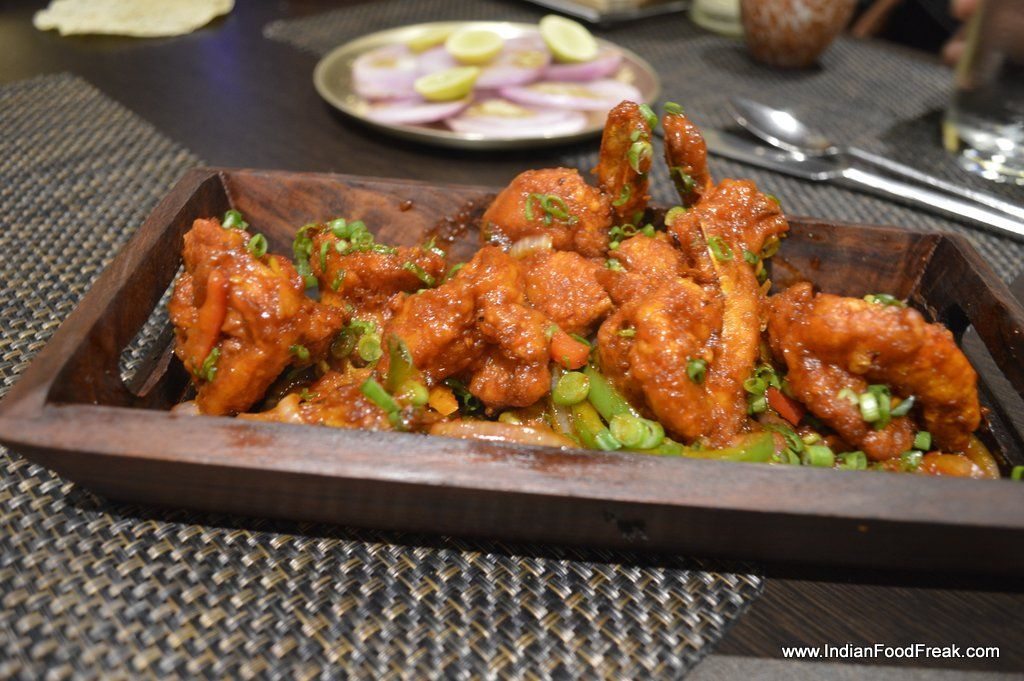 Prawn Chili Fry Prawn Chili Fry was from the Chinese section. This was a take off on the popular chili chicken. Again very well made with batter fried jumbo prawns tossed with julienned onion and capsicum in Chinese sauces. This would make perfect accompaniments to drinks.
