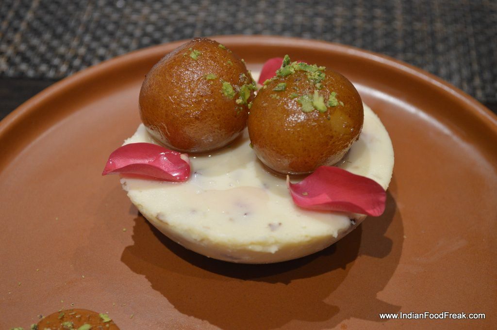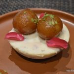 Gulaboooo – petite, soft gulab jamuns served on a rose baked yoghurt. The baked yoghurt had fresh rose petals embedded in it which was a pleasant surprise.