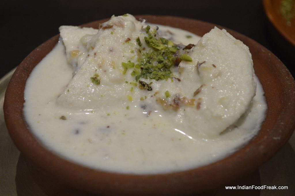 Ras Dates MalaiRas “Dates” Malai – was ras malai sandwiched with chopped and soaked dates served in an earthen dish. At first, I thought it would be too sweet but it was very well balanced and not too sweet.