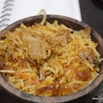 Raan Yani – a subtle biryani made with pulled lamb from the raan. The fibre of the lamb gets mixed up with the rice and is not chunky pieces. Lovely innovative dish.