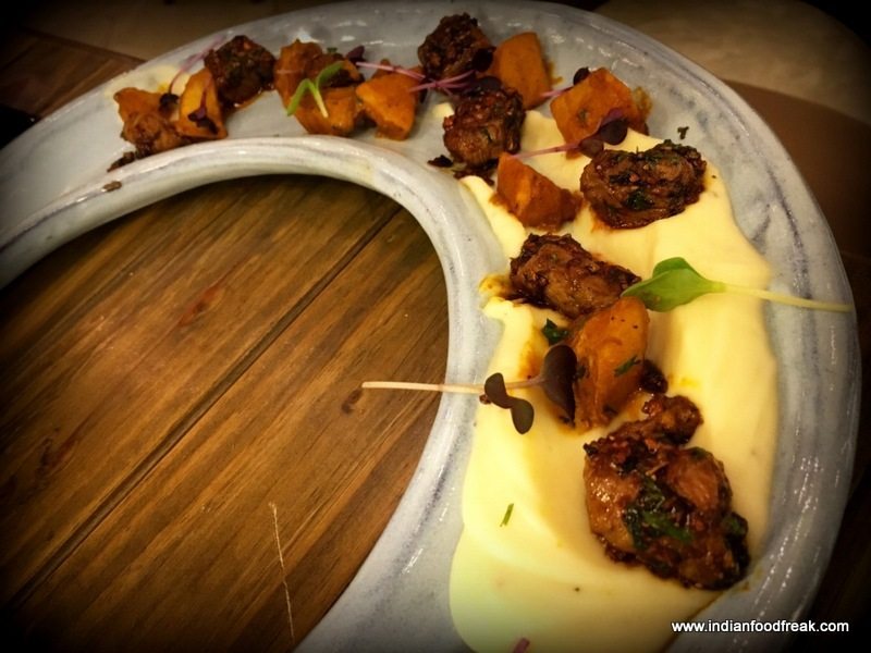 Then came Arancini – not in the way we know the Sicilian classic. It was the glamourized (or should I say farzified?), version of the modest Indian’s dal, chawal, achaar and papad!The flavours rang true every bit to the Indian staple, and in this inventive avatar, I would gladly order it all over again!