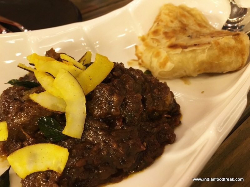 With the next dish of Mutton Pepper Fry with Layered Flaky Paratha, I found myself carried in a bite to the beautiful back-waters of God’s own country. The flavours on the dish were delicately balanced. Every morsel carried the essence of pepper without burning the mouth.