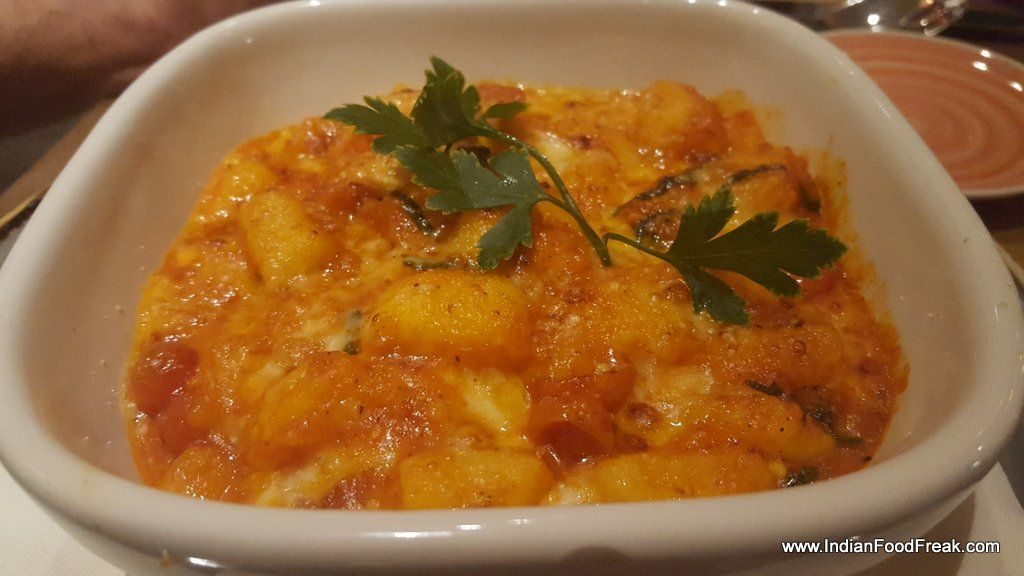 The pastas served at Sorrento are artisanal, and are in uncommon shapes and sizes. Fagottini was beautiful and triangular shaped, stuffed with ricotta and lemon and boasted of a superlative sauce made of ricotta, orange and lemon zest. The Stozzapreti, spindly and in twirls, came with onion and spicy Italian sausage in a tomato-based sauce. Ravioli with caramelized Parmesan cheese was delicious. I like my gnocchi with strong Gorgonzola sauce but allowed myself not to tamper with what the restaurant had to offer. The experience was stupendous. The Potato gnocchi was tender with a light tomato sauce balanced by melted mozzarella and aged Parmesan cheese. Tortellini stuffed with sweet pumpkin was suave and filling.