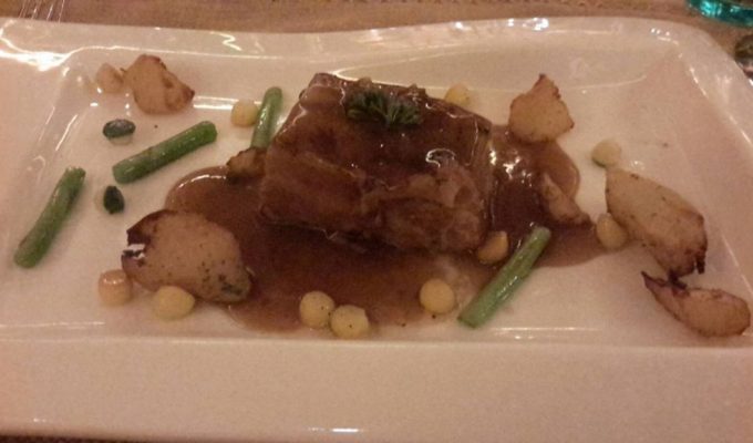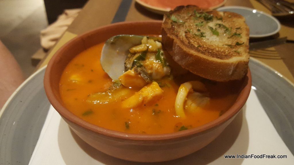 The chef lovingly rustled up a Fresh salad of rocket leaves, mozzarella and luscious tomatoes of different hues from the newly acquired salad cart. Seafood soup was splendid with a rich tomato-based broth full of nicely done squids, prawns, fish and mussel A drizzle or two of extra virgin olive oil and pieces of fresh bread dunked into the vegetarian Fennel flavoured Fava bean soup enhanced the soup’s flavour and texture.