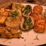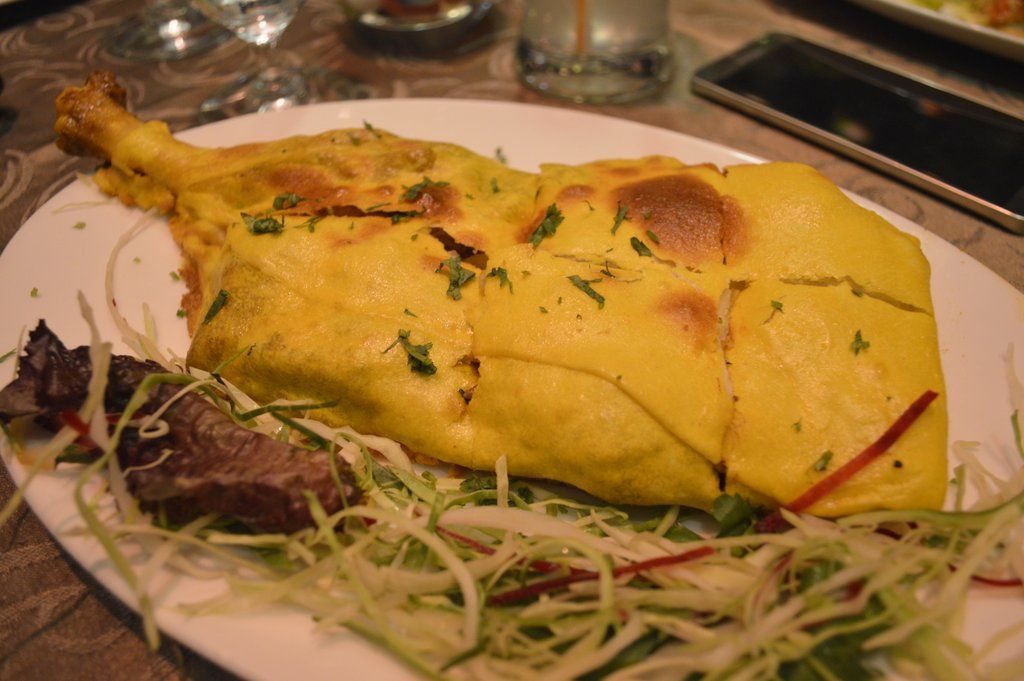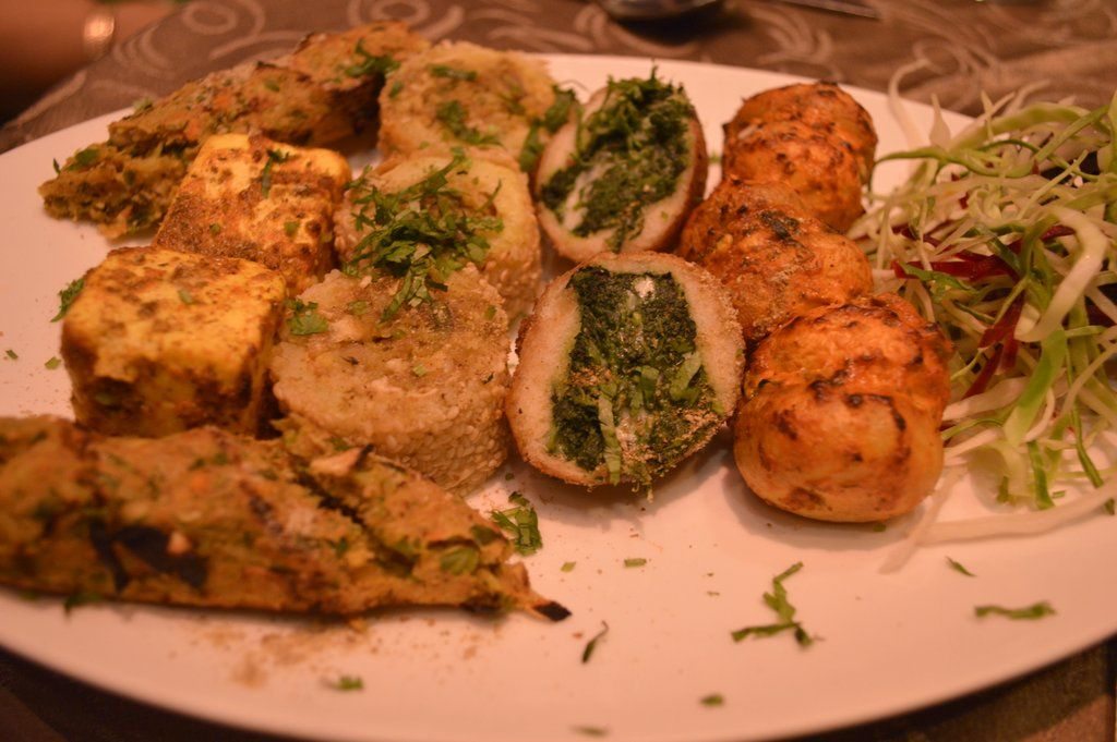 Nook serves Indian, Oriental and Continental dishes and I stick to Indian cuisine this time except for ordering the Chinese soup. The Lemon Coriander soup has good flavour of coriander but lemon flavours are very subdued. The Veg Kebab Platter is complete value for money with enough kebabs for atleast three diners. I enjoyed the Cheese Stuffed Mushroom and especially the Kandhaari aloo. The platter also has Palak ke Sholey, Seekh Kebab and Paneer Tikka. In the non vegetarian section, I love the Sikandari Raan. This is a very interesting way to present the raan where it is wrapped in big size roti dough and baked. This ensures that this moist and juicy raan stay warm for long enough to eat.