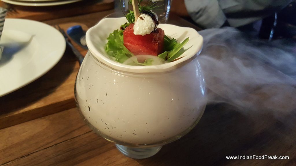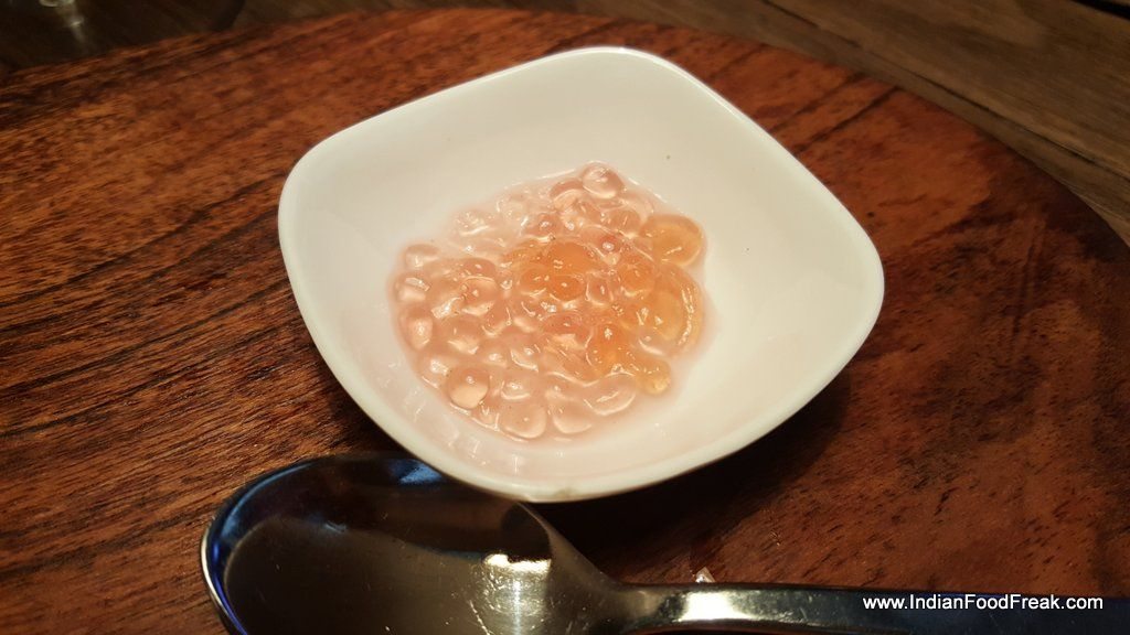 Even the drinks are very innovative. I try the Cosmopolitan that has cosmo spheres with color coming from blueberry compote. A well balanced drink made with reverse sphereification. I enjoy the Boston Beach too that is made with whiskey, gin, vodka, triple sec and cola. I find it very competitively priced at Rs. 249.
