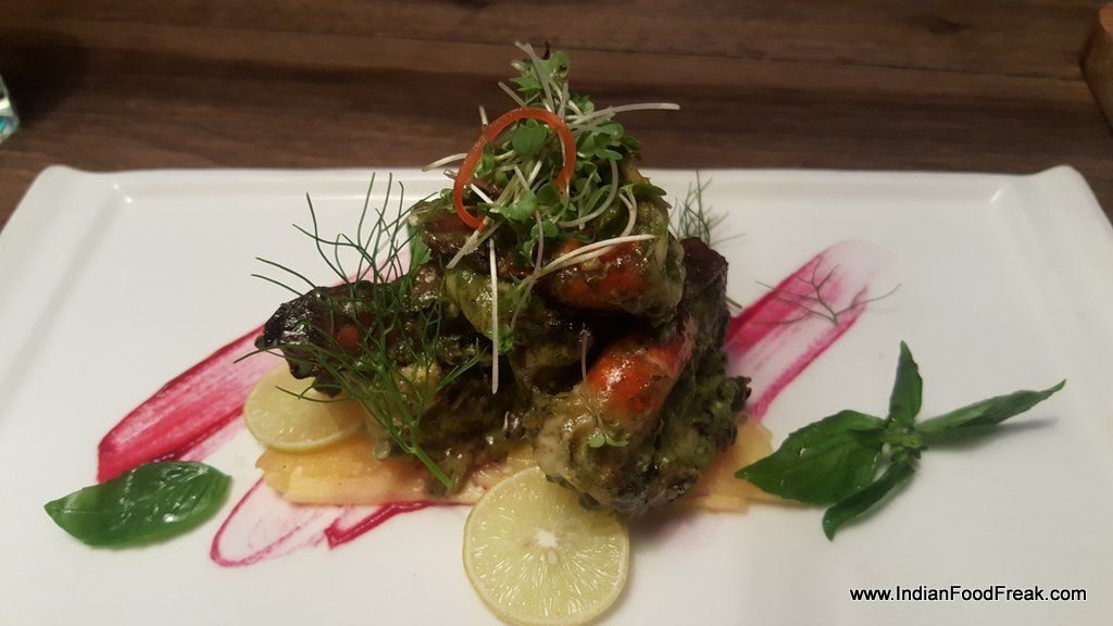 Charmoula Grilled Jumbo Prawns with mustard micro greens are next. The prawns are firm and nice though I feel that instead of pineapple carpaccio on which they were served, the prawns will go better with grilled caramelised pineapple.