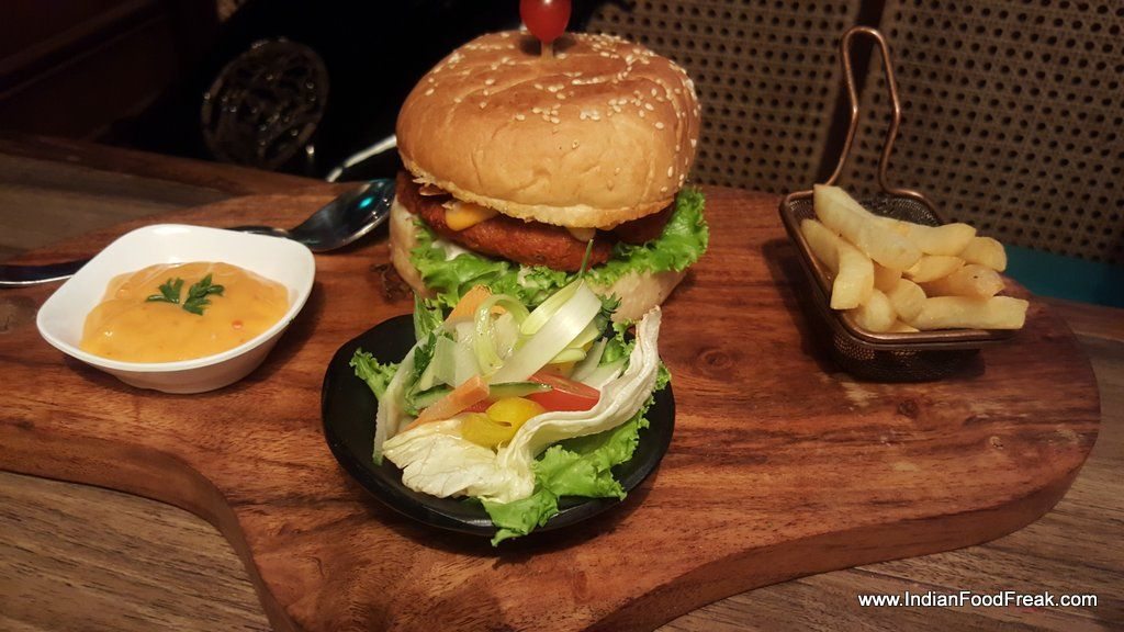 The American Military Cheese Burger with moist and juicy lamb patty gets it flavours from the ocheddar cheese and it very innovatively uses papad. The papad lends it flavours of black pepper in the right quantity. It’s a love at first bite.