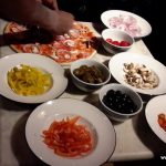 Demo of pizza making2To make the tasting session fun and meaningful, Pizza Express had a pizza making demo class by the senior chef. This was followed by a pizza making competition organized amongst us. We were divided into two groups and each group had to make a thin crust vegetarian pizza from scratch keeping in mind the instructions given in the demo class. May I be boastful enough to say that my group came out with flying colors and we won ? Quite enjoyed, this competitive adrenaline high – the lengths one had to cross to get to eat pizzas !