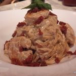 Linguini cajun gamberoLinguine Cajun Gambero Pasta – Creamy, spicy linguine pasta with chunky prawns tossed in Cajun spices, grilled peppers and sun dried tomatoes. The pasta was made well but a heavy hand in cream was used which can be toned down.