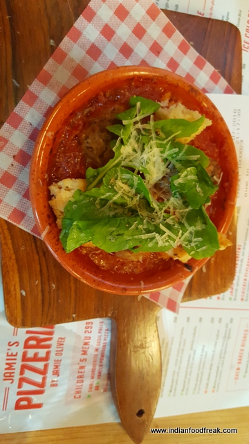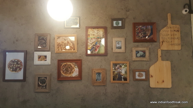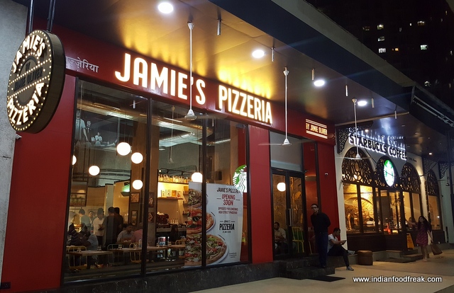 Located opposite the PVR Imax cinema of Phoenix Mills mall the décor of the restaurant is quite industrial with non-plastered walls with graffitis depicting scenes from Mumbai and pictures of Jamie´s creation on the other. The open kitchen bustles with activity giving the diners a closer feel of the behind the scenes activity at the restaurant. The 51 seat diner would remind you of one of those warehouse pizzerias which one finds in college areas in USA and Europe. The food therewith lives up to that image as well.