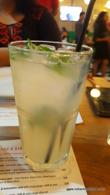 Though I am not entirely a paneer fan, especially when it comes to Italian food, the boring sounding Paneer Pesto packed a punch and would feature in my highly recommended dish from the menu. On the other hand, the Fritto Misto or the batter fried mixed Seafood starter was a bit too oily and dense to my taste. The caper dip that it was served with was comparatively much better.