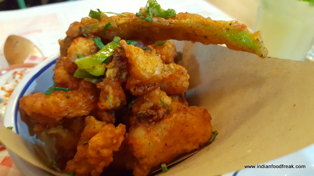 Though I am not entirely a paneer fan, especially when it comes to Italian food, the boring sounding Paneer Pesto packed a punch and would feature in my highly recommended dish from the menu. On the other hand, the Fritto Misto or the batter fried mixed Seafood starter was a bit too oily and dense to my taste. The caper dip that it was served with was comparatively much better.