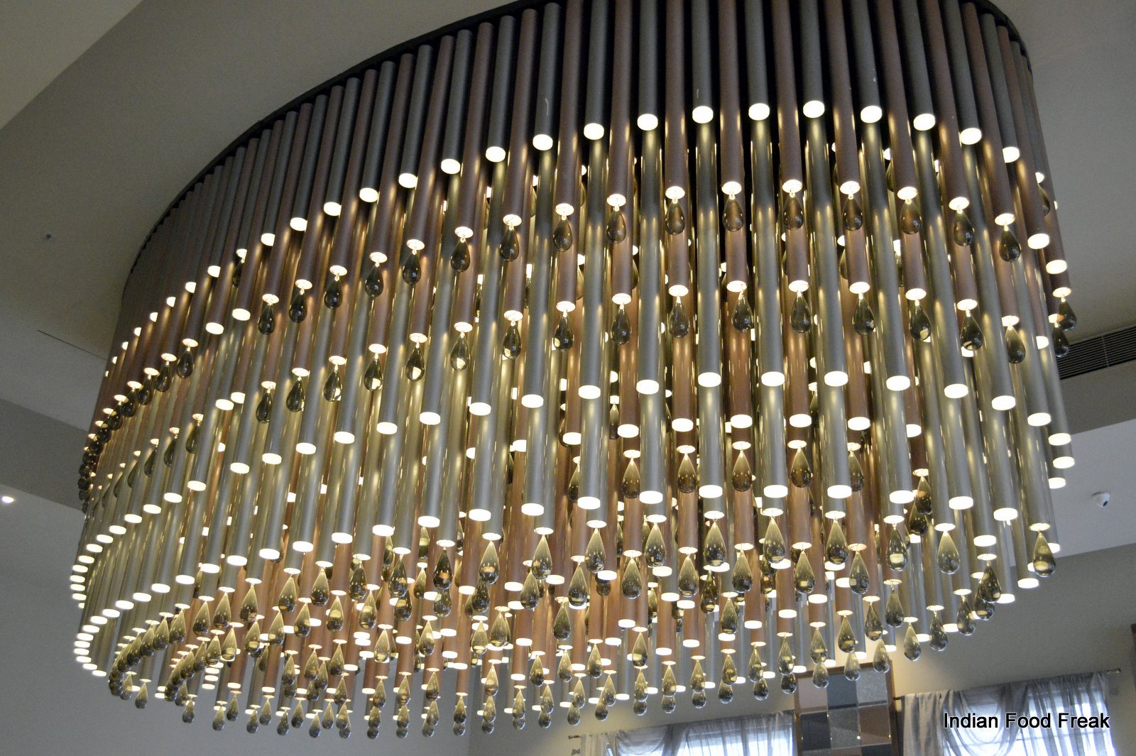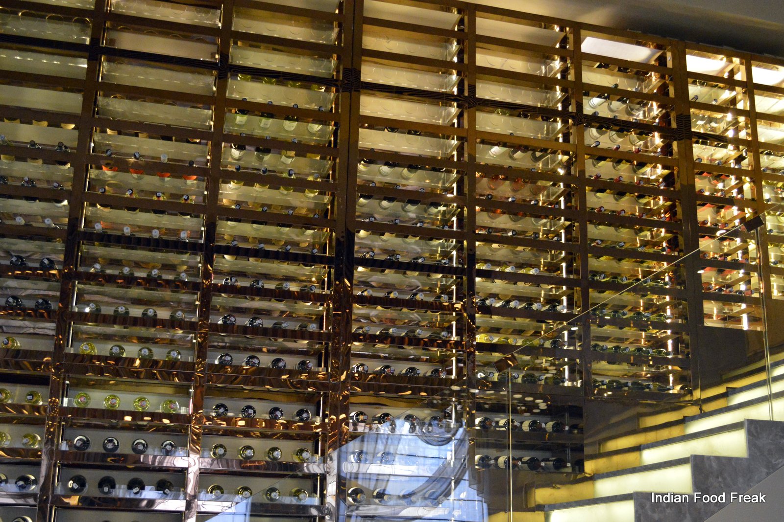 _DSC0071As one walks in through a small stretch of manicured gardens on either side of the walkway, one cannot help but notice the judicious use of the greenery as Masala Library grows its own herbs which are used daily in the kitchen. The décor inside is quite classic and timeless with a huge chandelier dominating the centre of the restaurant. One whole wall has been converted into a wine cellar with more than four hundred bottles displaying almost eighty labels of wine.