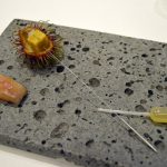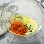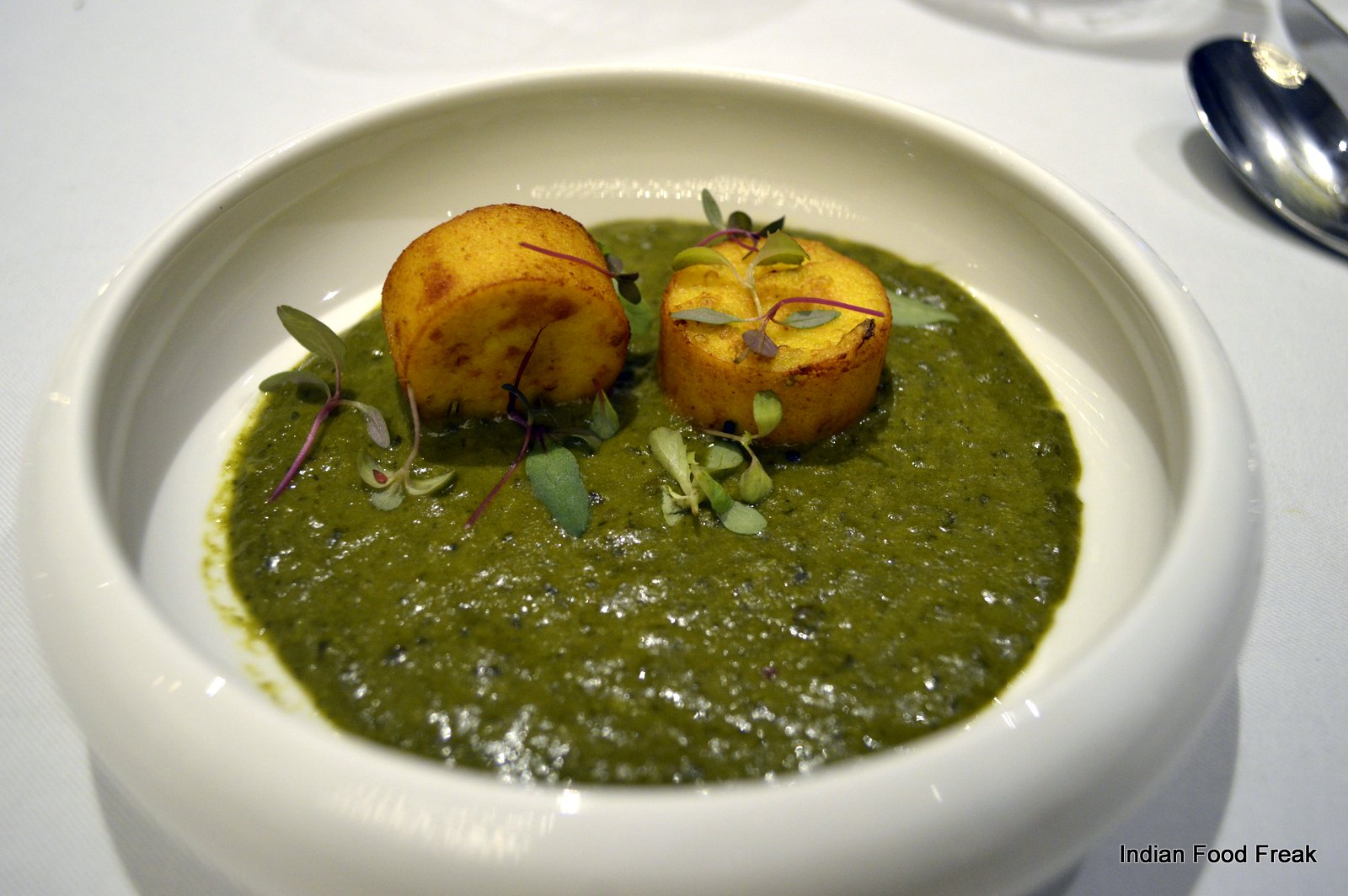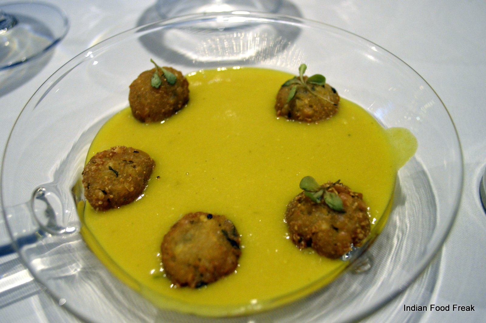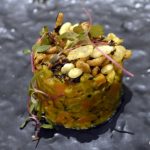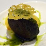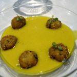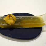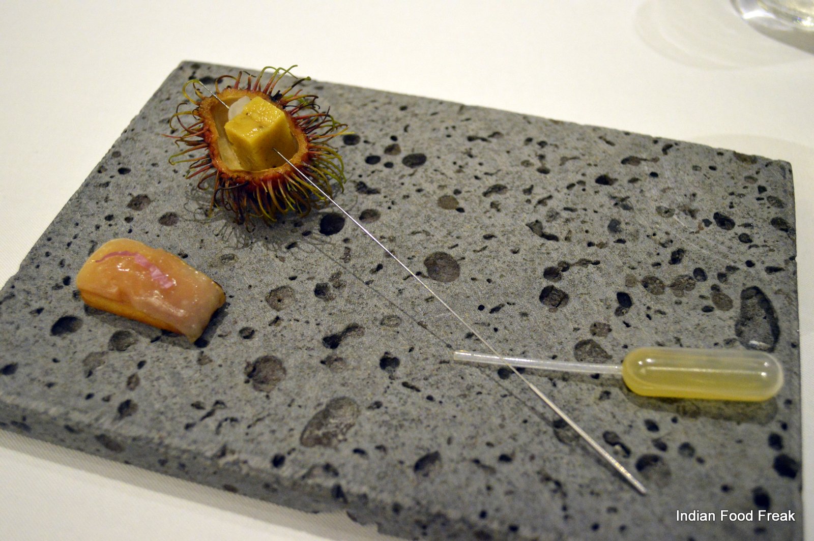 It is highly recommended that you go for the Chef’s tasting menu (both vegetarian and non-vegetarian) which is served at 7.30 pm and 9.30 pm daily. The tasting menu takes ninety minutes to complete as it has – yes – hold your breath – only nineteen courses. So it is very important to understand that one has to be punctual – if you are late, it is like trying hard to get on to a train that has already started. The menu and the small portion sizes tease and tantalize you. It has been so designed that for the most part, it leaves your taste buds asking for more. It is as if someone is being naughty and before you can even feel satiated with the first treat, you are given another treat forcing you to think that you have got a better deal with the second one.