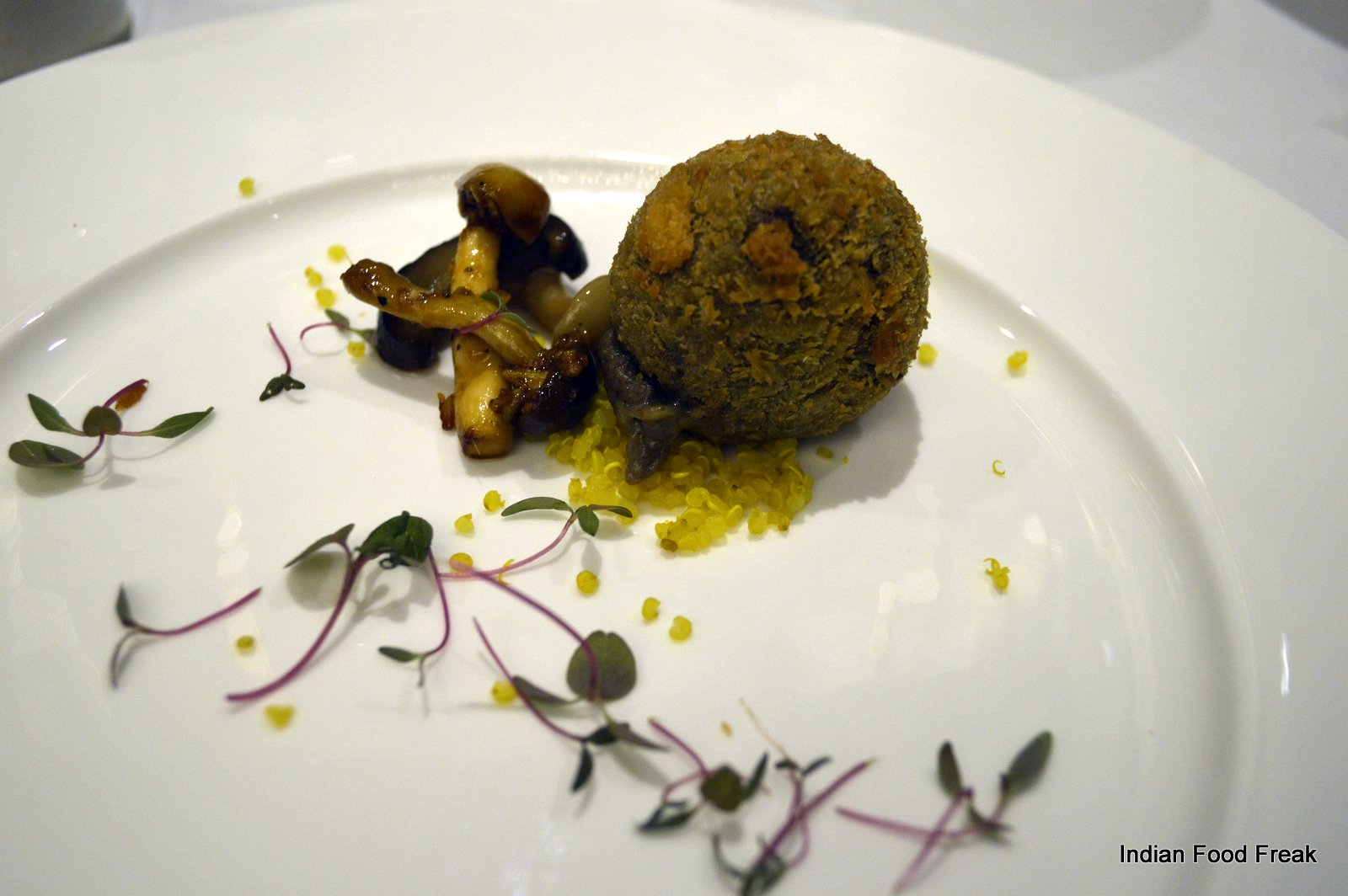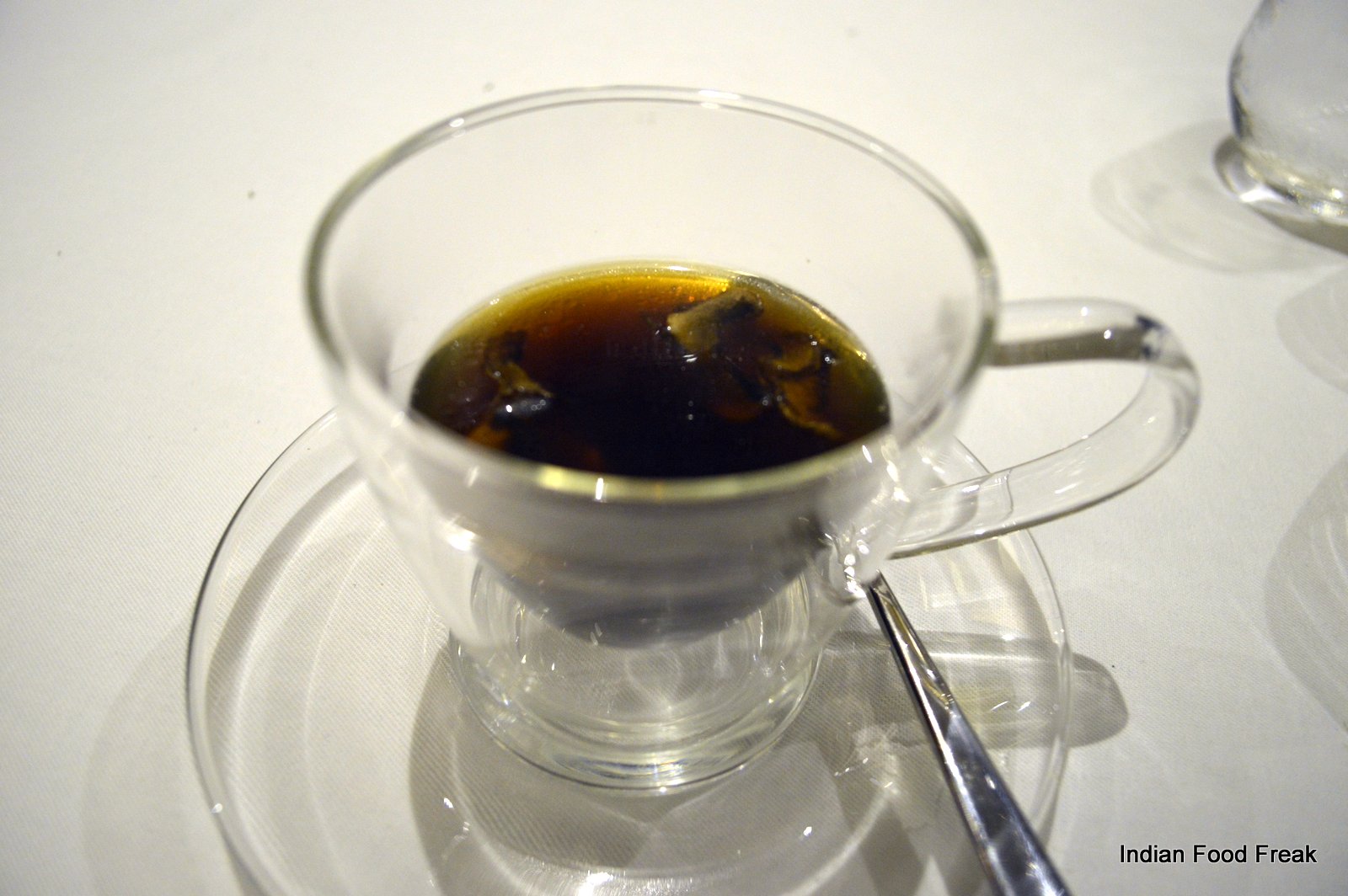 _DSC0097For desserts, we had the Jalebi Caviar where jalebi is served like salmon roe and Ashen Kulfi where the stem of the banana has been reduced to ashes to convert into a kulfi. If I have to find an area that can be worked upon, it would be the dessert section and only because it paled in comparison to the mind blowing savoury treats. After gorging like a glutton for these ninety minutes, this meal does not make you feel heavy or uncomfortable. In fact, like me, you’ll be counting the hours till you come back here again.