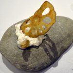 _DSC0077I was not expecting to be literally gob smacked by the explosion of flavours from the food. Chef Saurabh takes you from Kashmir’s Nadir Churma (a sliver of air fried lotus stem served with the traditional radish and walnut chutney) served on a rounded piece of rock (something you would find by a river bed) to Karnataka’s Maddur Vada with clear rasam (a crispy one rupee coin sized vada with a speck of tomato chutney which you toss into your mouth and drink the spicy and tangy rasam from an oblong glass tube).