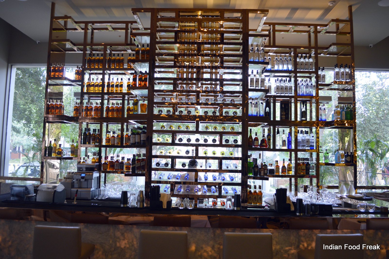 As one walks in through a small stretch of manicured gardens on either side of the walkway, one cannot help but notice the judicious use of the greenery as Masala Library grows its own herbs which are used daily in the kitchen. The décor inside is quite classic and timeless with a huge chandelier dominating the centre of the restaurant. One whole wall has been converted into a wine cellar with more than four hundred bottles displaying almost eighty labels of wine.